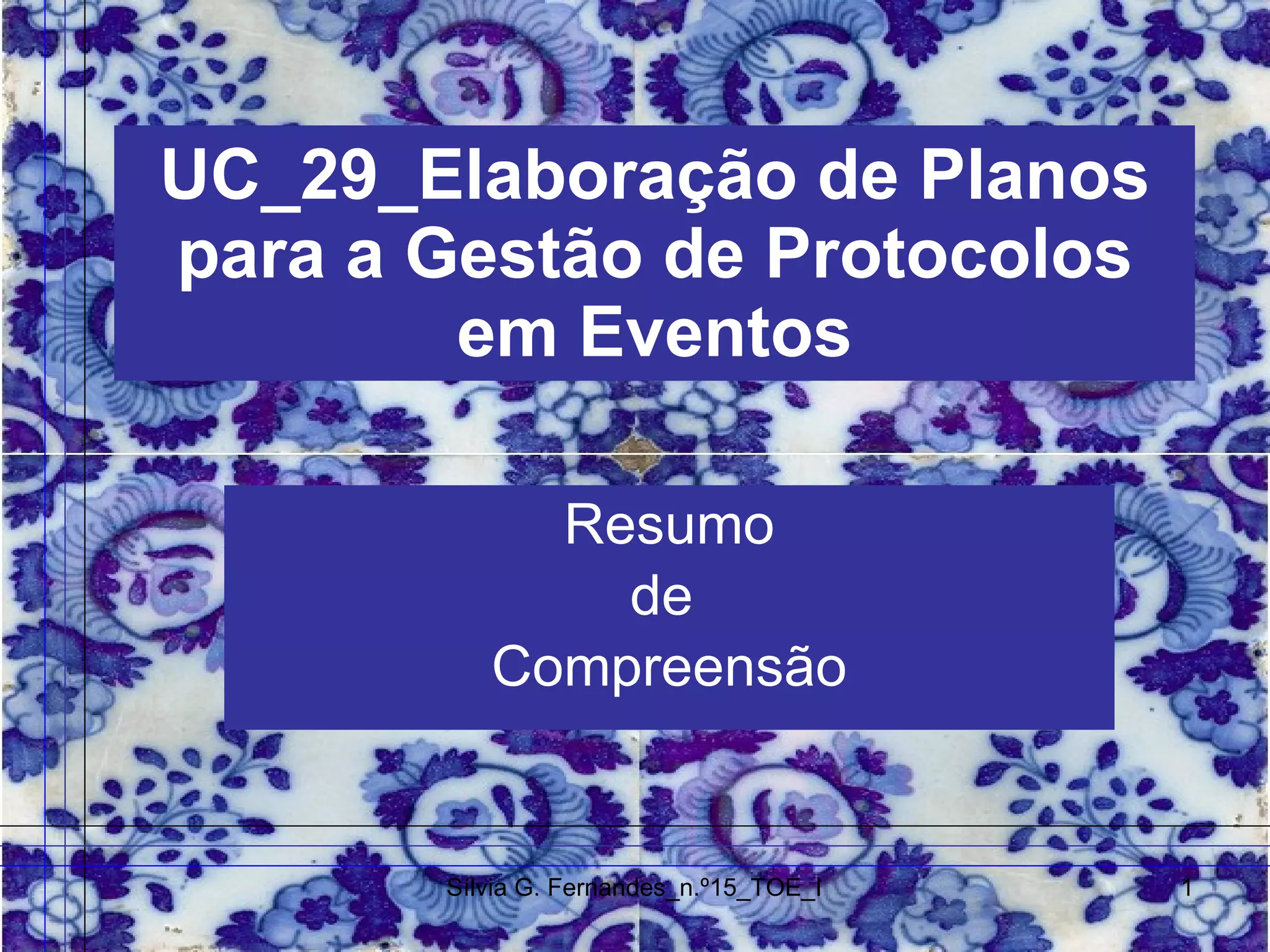 1) O documento discute os conceitos de protocolo, etiqueta e boas maneiras e como eles se aplicam à organização de eventos.