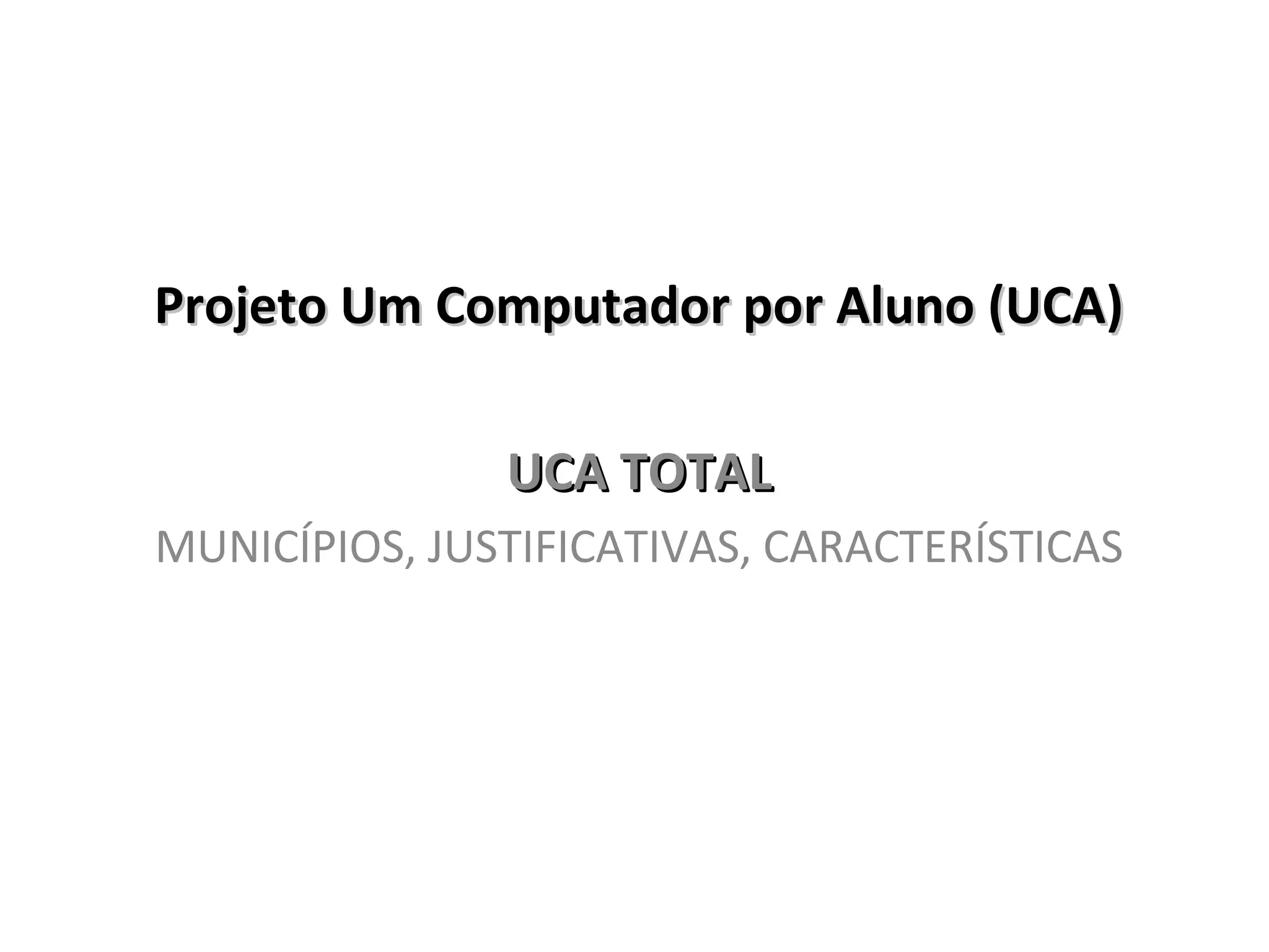 1. O documento descreve o projeto UCA Total em 5 municípios brasileiros, escolhidos uma região geográfica.