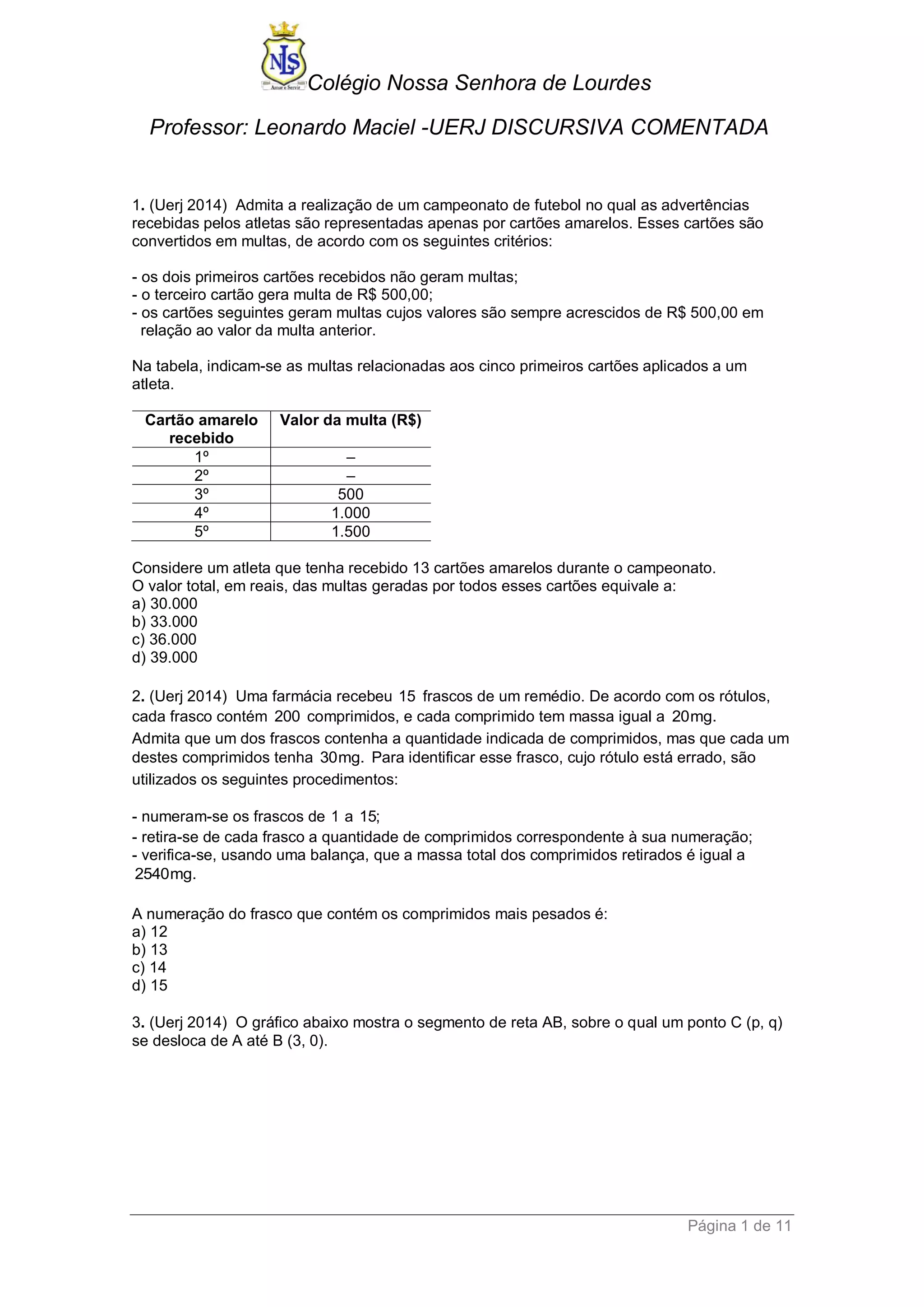 1. (Uerj 2014) Admita a realização de um campeonato de futebol no qual as advertências