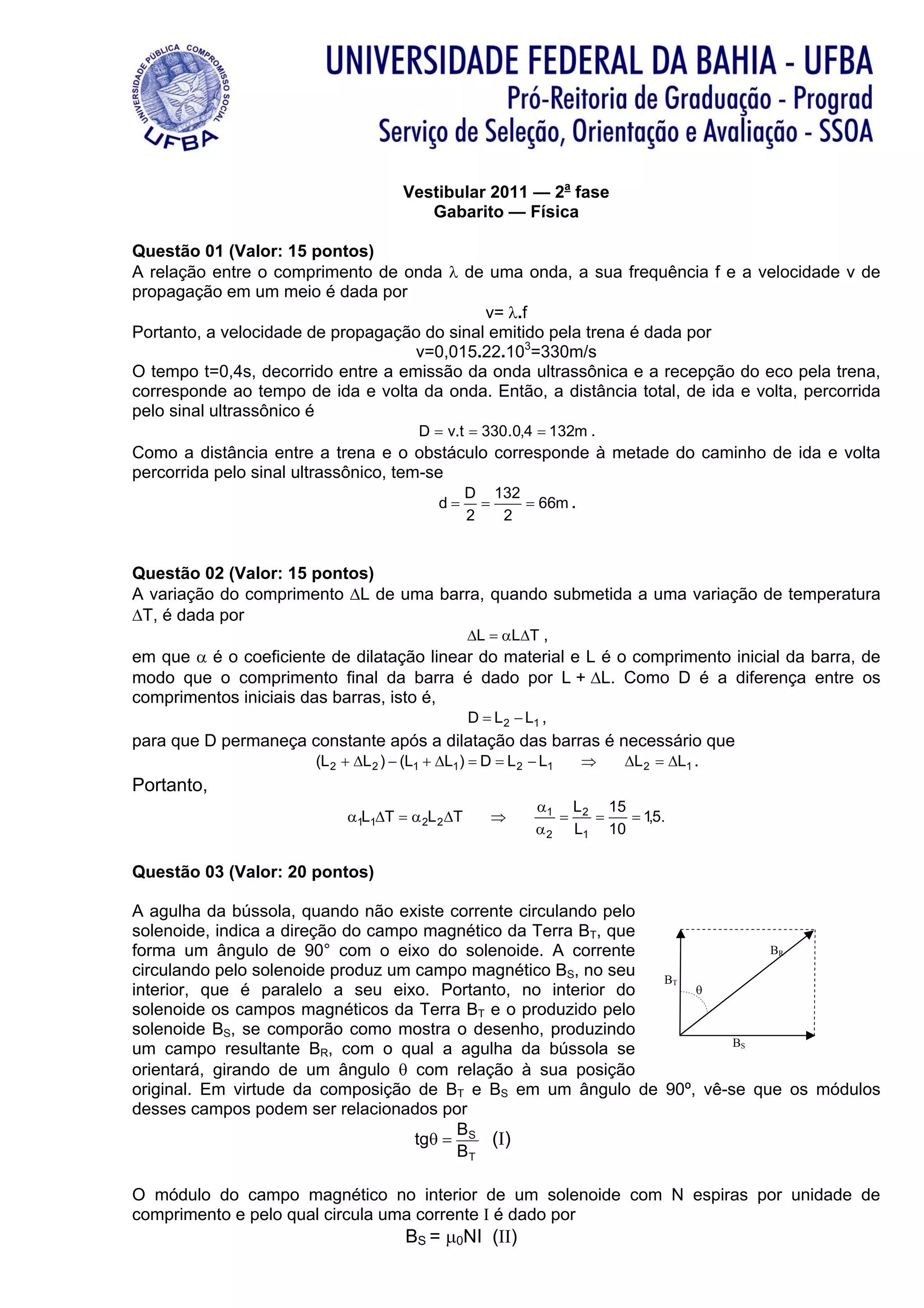 1) O documento apresenta as respostas corretas para as 6 questões de física de uma prova de vestibular.