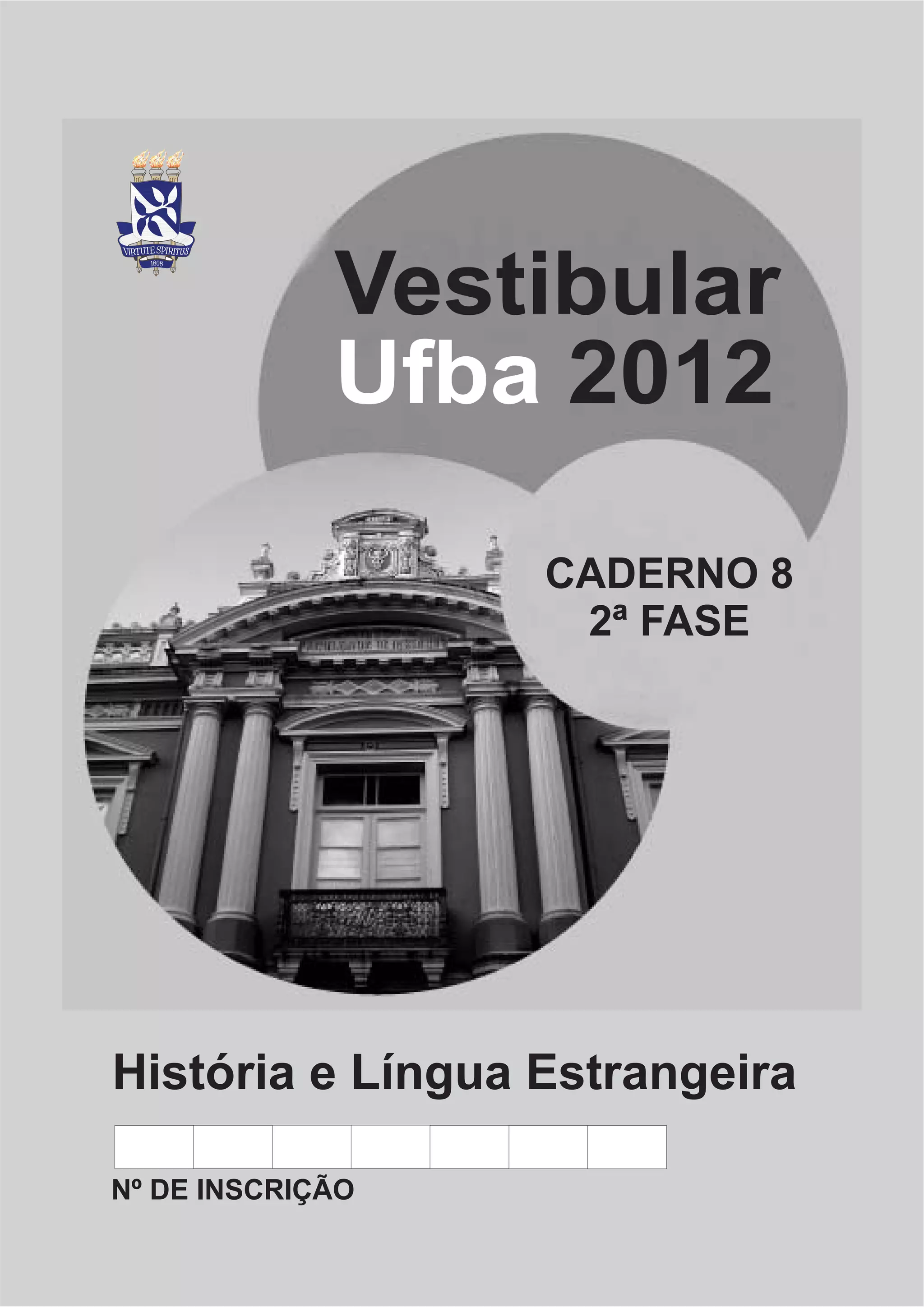 Este documento fornece instruções para a realização de provas de História e Língua Estrangeira da 2a Fase do Vestibular da UFBA em 2012. O documento inclui informações sobre o número e tipo de questões em cada prova, instruções gerais sobre preenchimento das folhas de resposta, e detalhes sobre o tempo disponível para a realização das provas.