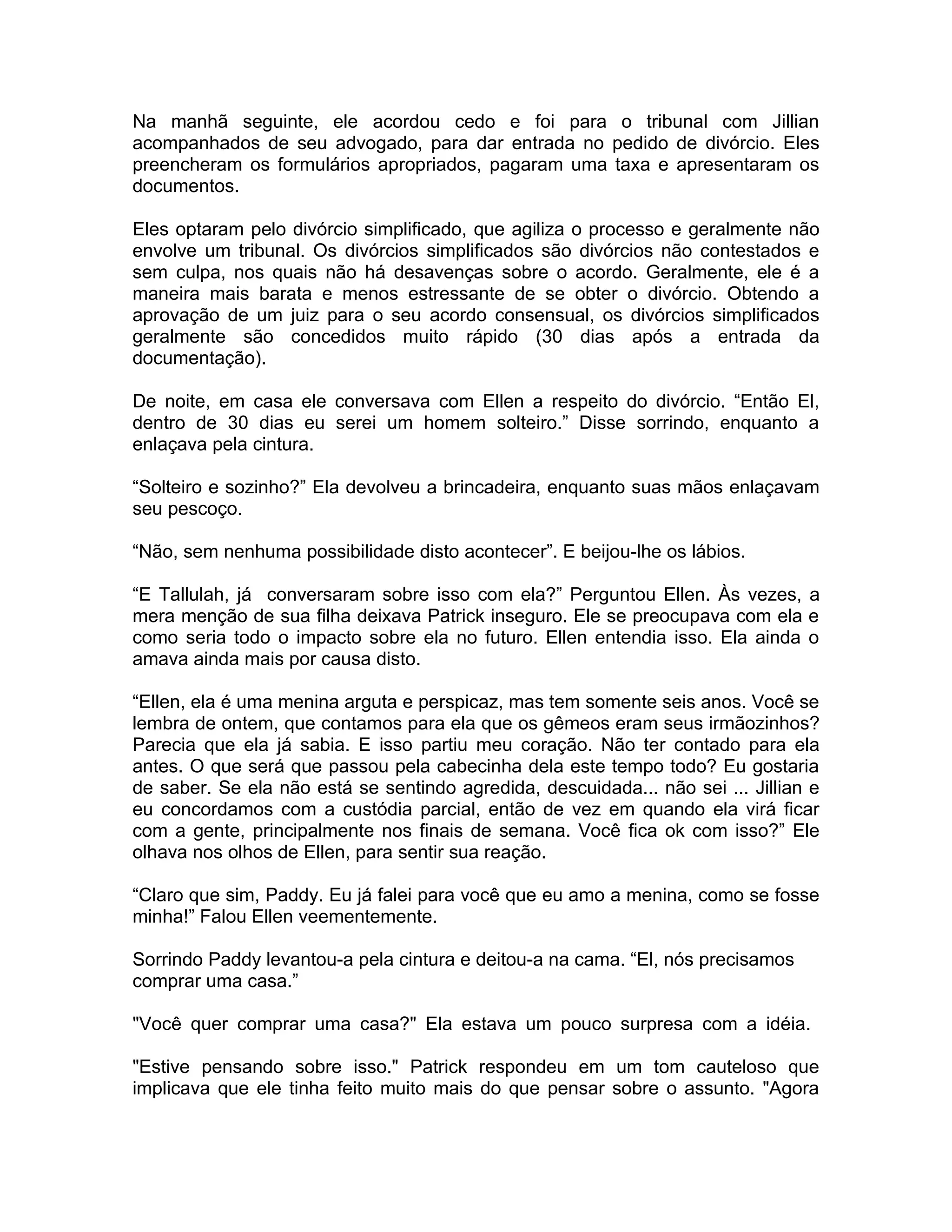 Patrick e Jillian deram entrada no pedido de divórcio simplificado, que agiliza o processo e geralmente não envolve um tribunal. Patrick conversa com Ellen sobre comprar uma casa nova para começarem uma nova vida juntos com os filhos. No aniversário de Ellen, Patrick dá a ela um colar da Cartier com seu inicial.