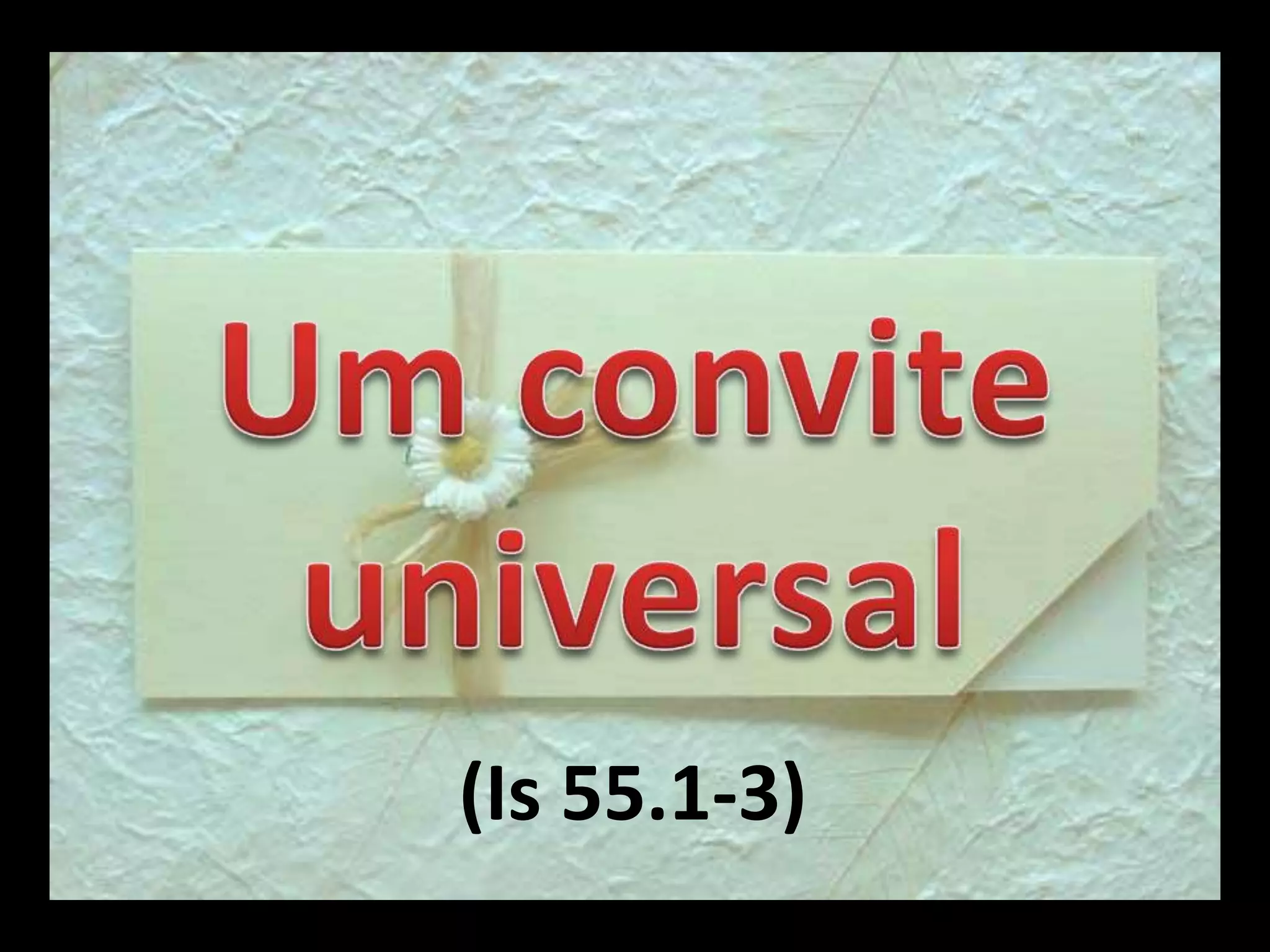 O documento convida todos aqueles que têm sede espiritual a virem a Jesus Cristo, independentemente de sua raça, cor ou condição social. Vir a Jesus significa ir à fonte das bênçãos espirituais e ter todas as necessidades supridas através dele. A salvação em Cristo é gratuita para quem a desejar.