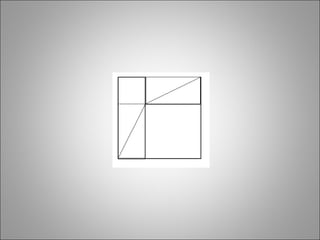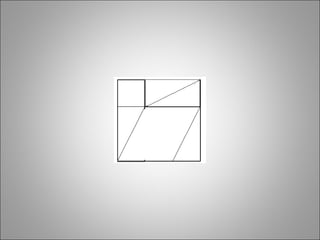 O documento apresenta uma demonstração do Teorema de Pitágoras dividida em etapas: primeiro decompõe um quadrado maior em figuras internas menores, calcula a área de cada uma e soma as áreas totais; depois reorganiza as figuras em um novo formato com um quadrado central e triângulos ao redor, calculando novamente as áreas para chegar à igualdade entre a soma dos quadrados dos catetos e o quadrado da hipotenusa.
