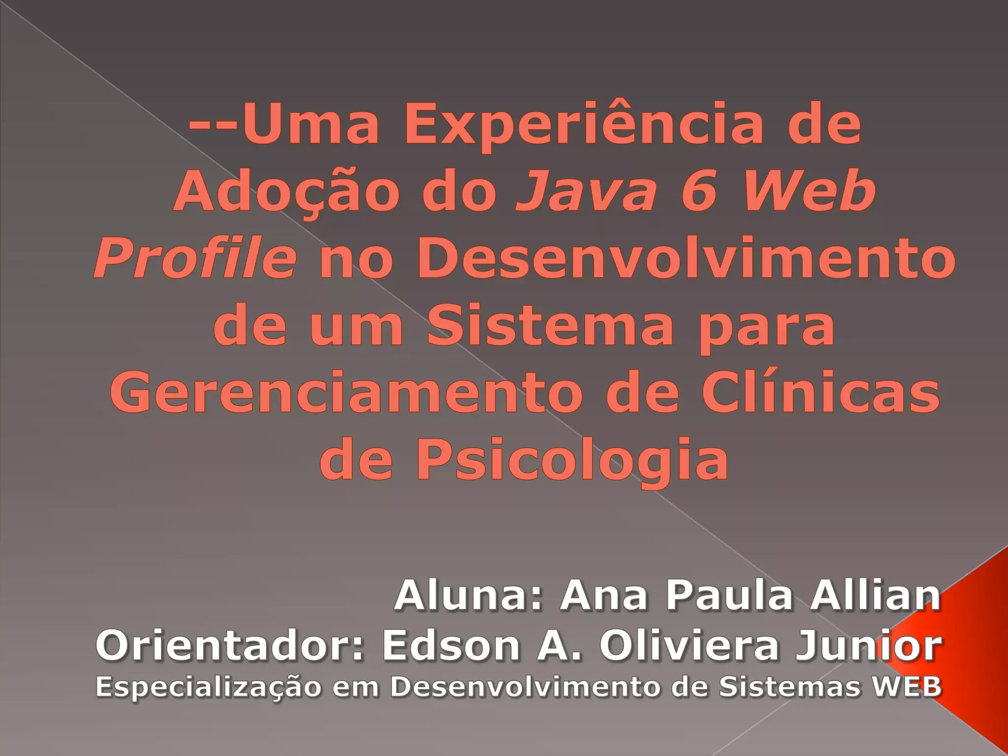 O documento descreve o desenvolvimento de um sistema de gerenciamento de clínicas de psicologia usando o Java EE Web Profile. O sistema permite agendamento de pacientes, registro de consultas e controle financeiro, melhorando sobre o método anterior de uso de papel. O sistema foi construído usando JPA, EJB, JSF e implementou padrões como camada de domínio, negócios e apresentação.