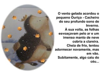 O pequeno Ouriço-Cacheiro recebeu um gorro de Natal que era grande demais para ele. Ele o deu ao seu amigo Coelhinho, que também não serviu. O Coelhinho deu o gorro ao Texugo, que também não serviu. O Texugo deu o gorro à Raposa, que fez buracos para as orelhas e ficou com ele. Mais tarde, a Raposa encontrou o pequeno Ouriço-Cacheiro perdido na neve e o salvou usando o gorro quentinho.