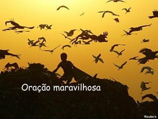 Esta oração agradece a Deus por suas bênçãos diárias, pede perdão pelos pecados, e pede proteção, sabedoria e força para enfrentar os desafios. Também pede por amigos, familiares e aqueles que sofrem, e expressa fé em Deus para resolver problemas e atender às necessidades das pessoas.