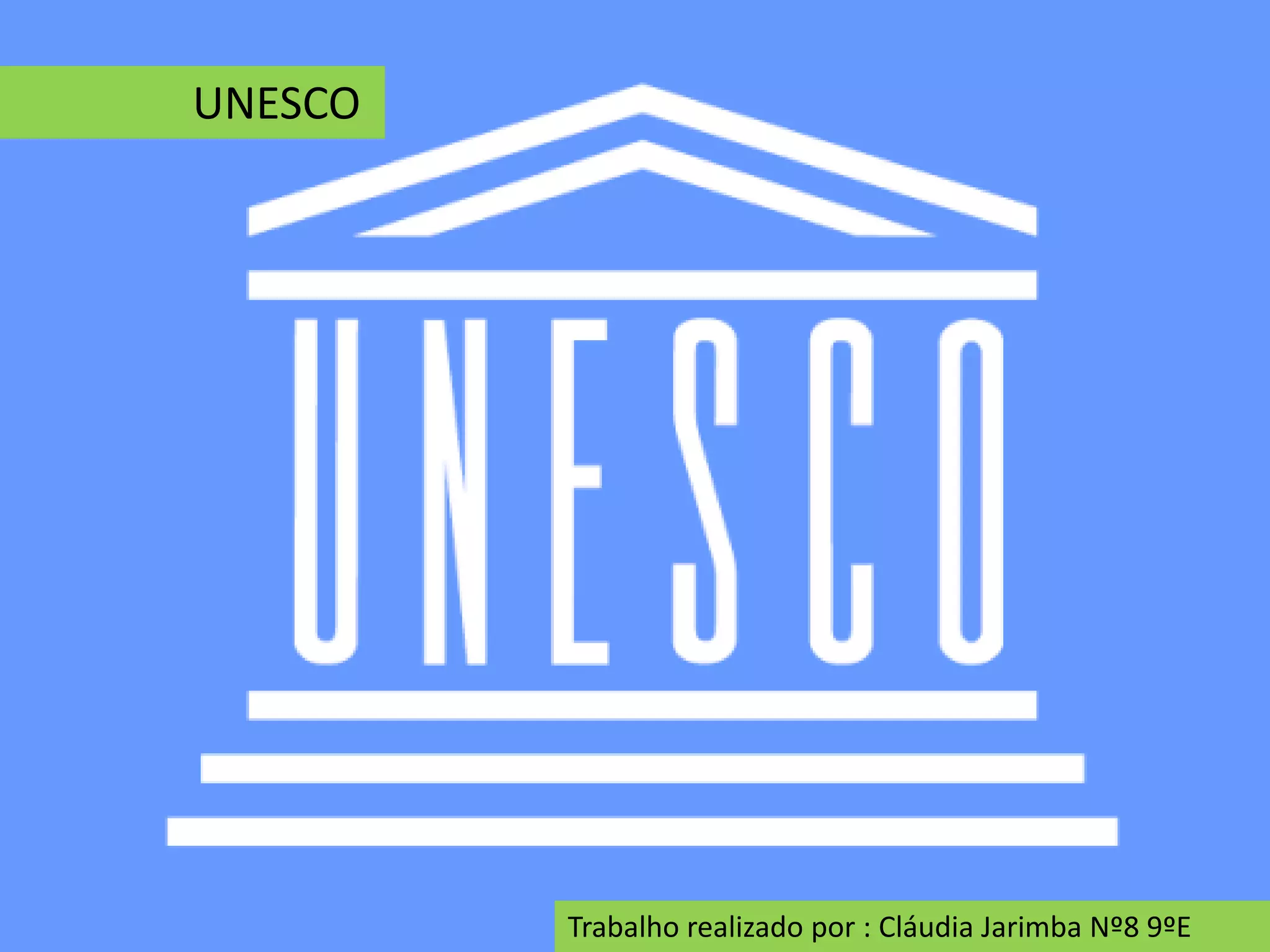 A UNESCO foi fundada em 1945 para promover a paz, a educação e a cultura através de 112 países-membros. Seus principais objetivos incluem reduzir o analfabetismo, melhorar a educação, combater a discriminação e promover a diversidade cultural e o diálogo intercultural.