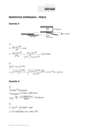 3) A questão 3 apresenta cálculos para a constante elástica de um mola e a energia potencial nela armazenada.