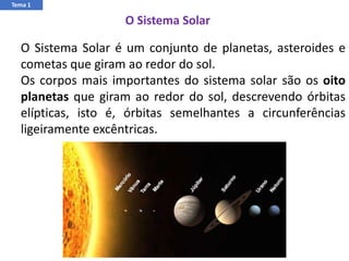 O SistemaSolar é um conjunto de planetas, asteroides e