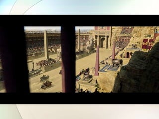 O documento descreve a crise da República Romana e a ascensão do Império Romano. A crise foi causada pelo acesso desigual à terra e empobrecimento dos camponeses, levando a agitações populares. Após várias disputas políticas, Júlio César tornou-se ditador e reformou o governo, mas foi assassinado. Isso levou à formação do segundo triunvirato e uma disputa entre Marco Antônio e Otávio, que pôs fim à República e deu início ao Império sob o gover