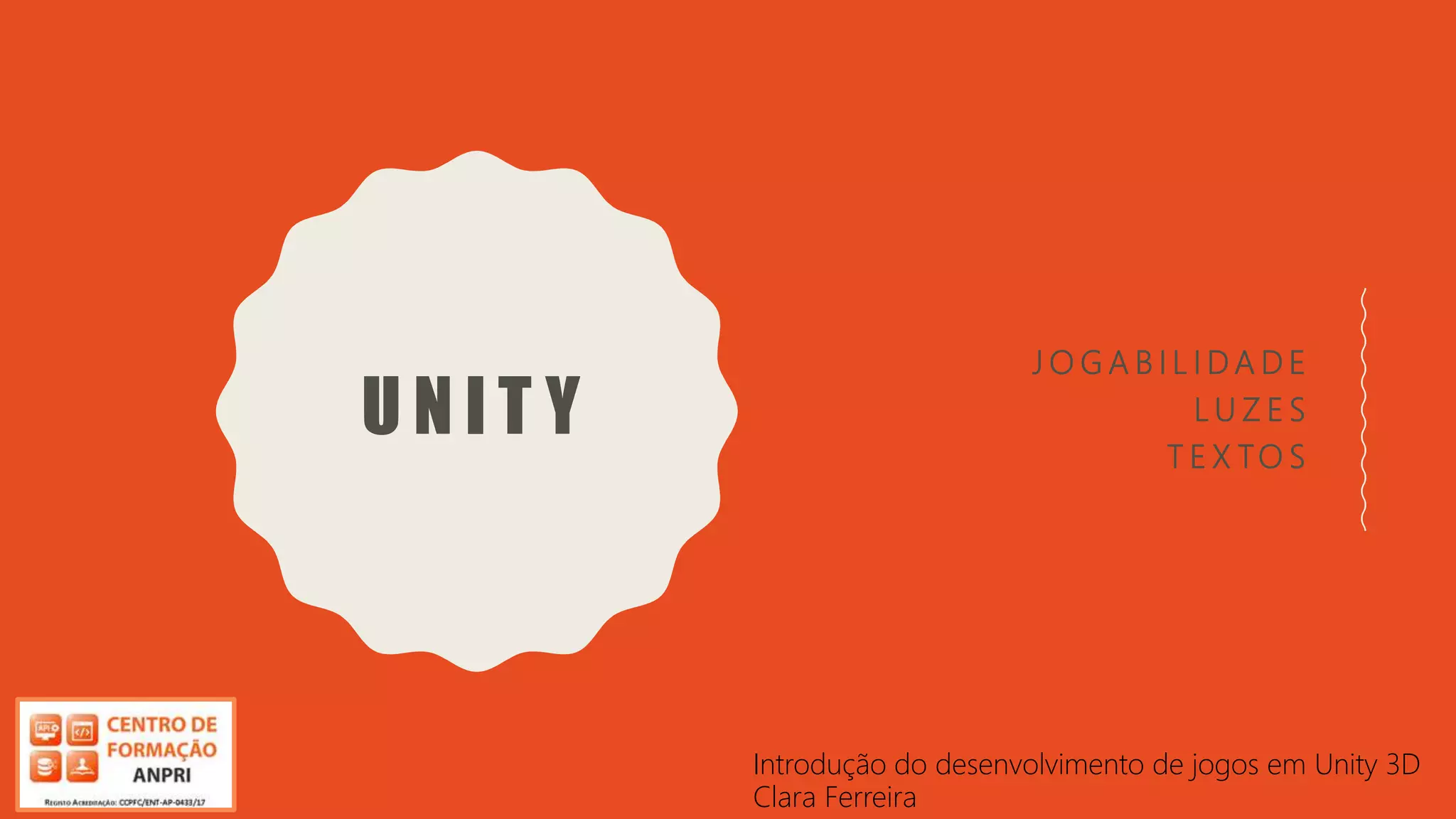 O documento discute técnicas de desenvolvimento de jogos em Unity 3D, incluindo a criação de múltiplos objetos idênticos usando materiais, posicionamento e iluminação de objetos, e adição de texto através da interface do usuário e código.