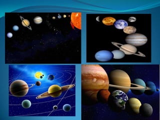 O documento descreve os principais corpos celestes que compõem o Universo, incluindo estrelas, planetas, luas, cometas, asteróides e galáxias. Explica que o Universo contém bilhões de galáxias formadas por agrupamentos estelares unidos pela gravidade. Também detalha as características dos planetas do Sistema Solar e de outros objetos como luas e cometas.