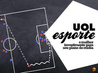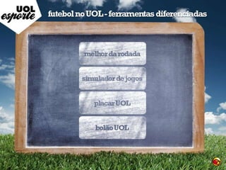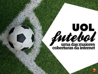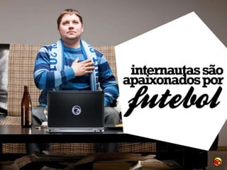 O documento discute o interesse dos internautas brasileiros por futebol, mostrando que xx% deles se declaram apaixonados pelo esporte, contra apenas xx% na população geral. Ele também fornece dados sobre o número de usuários e visualizações dos sites e aplicativos sobre futebol da UOL, como o Placar UOL, além da distribuição de idades desses usuários.