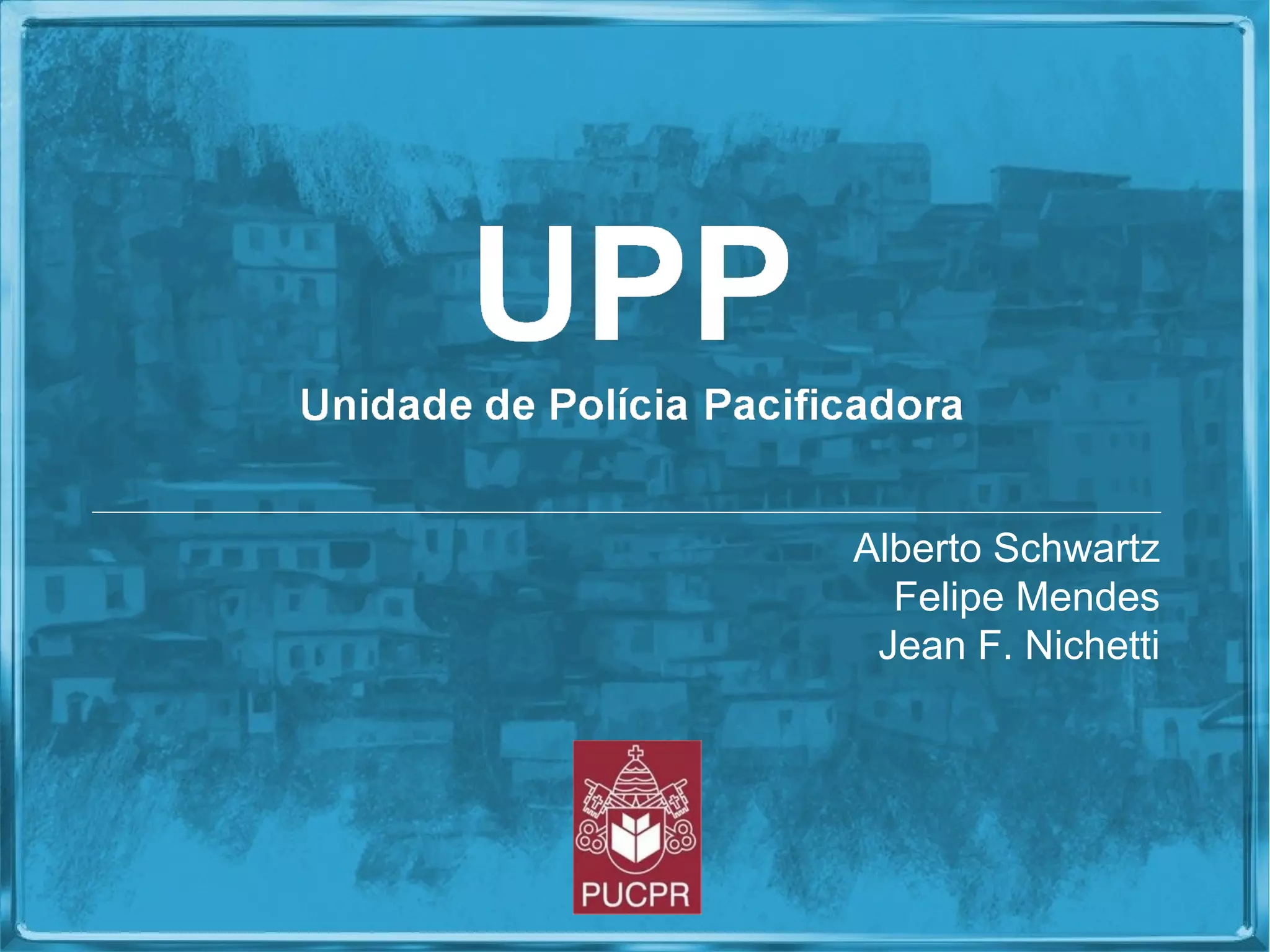 O documento discute as Unidades de Polícia Pacificadora (UPPs) no Rio de Janeiro. As UPPs têm como missão mobilizar políticas públicas municipais para promover a pacificação e presença do estado em áreas beneficiadas. Seus objetivos são assegurar a consolidação da pacificação, promover cidadania e desenvolvimento social e econômico. O documento também discute estatísticas, argumentos contra e a favor do sistema de UPPs.