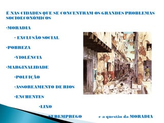 O documento discute o processo de urbanização como a produção do espaço geográfico através da construção de cidades. A urbanização ocorre quando há deslocamento em massa da população rural para os centros urbanos, resultando no predomínio de atividades secundárias e terciárias nessas áreas. As cidades se desenvolvem de acordo com suas funções econômicas e hierarquizam-se em redes urbanas controladas pelas grandes metrópoles.