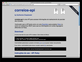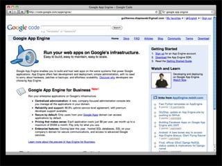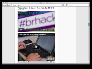 O documento discute como a internet pode ser usada como uma plataforma para criar e hospedar aplicativos e serviços. Ele explica como dados e APIs de sites populares podem ser combinados para gerar novos aplicativos, e como a internet fornece infraestrutura e recursos para desenvolvimento sem necessidade de outros softwares. A mensagem central é que a internet em si pode servir como plataforma se seus recursos e dados forem abertos e compartilhados.