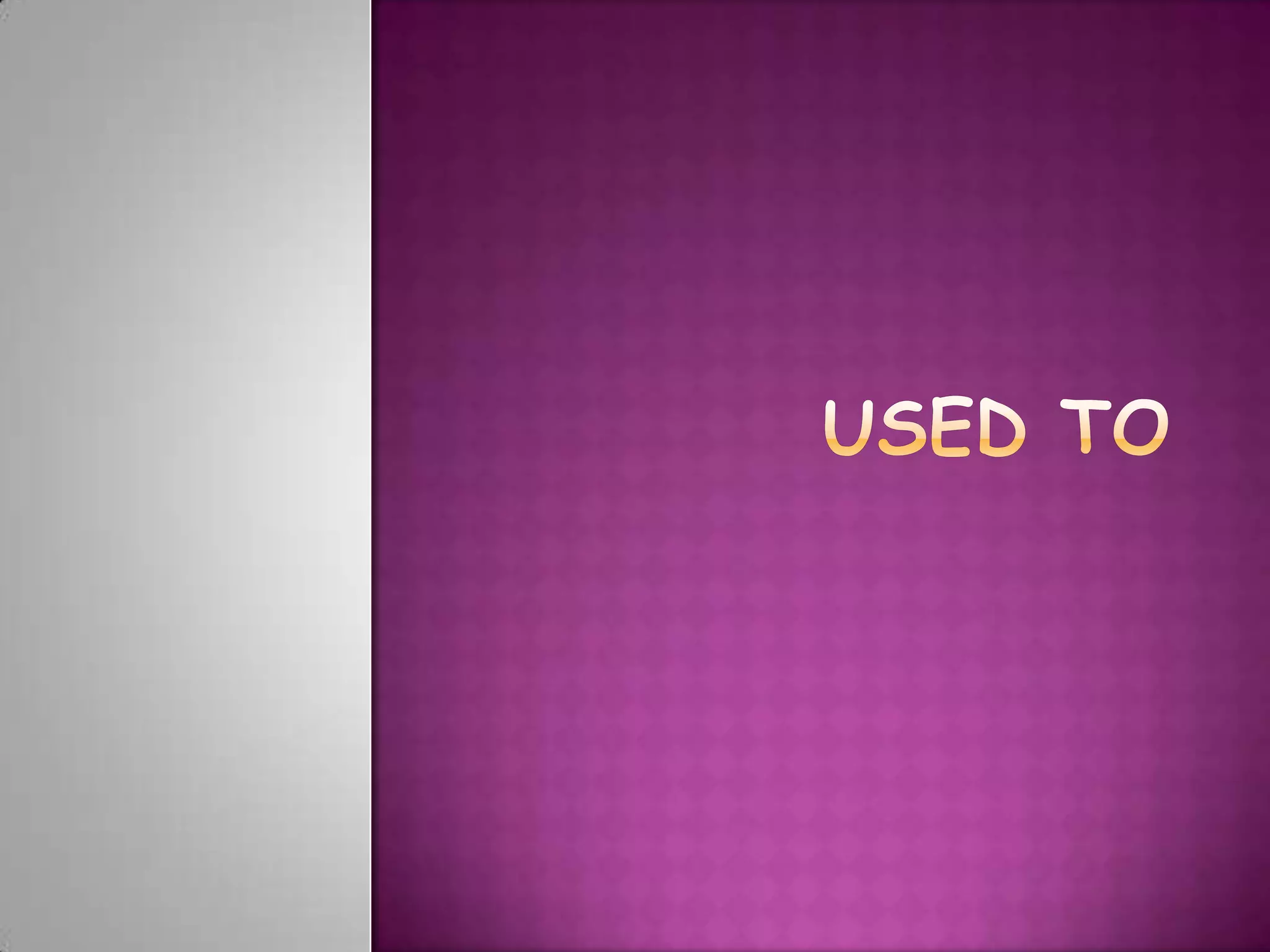Used to é um verbo semi-modal que só existe no passado e é usado para descrever hábitos ou condições do passado que não existem mais no presente. Pode expressar hábitos repetidos ou situações permanentes no passado. Na negativa, existem quatro formas de usar used to e para perguntas há três formas possíveis.