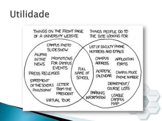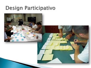 O documento discute o conceito de Experiência do Usuário (UX), definindo-a como as respostas e percepções do usuário relacionadas a um produto, sistema ou serviço antes, durante e depois de utilizá-lo. Ele também descreve elementos importantes da UX como contexto, usuários e conteúdo, e métodos como entrevistas com usuários, prototipagem e testes de usabilidade.