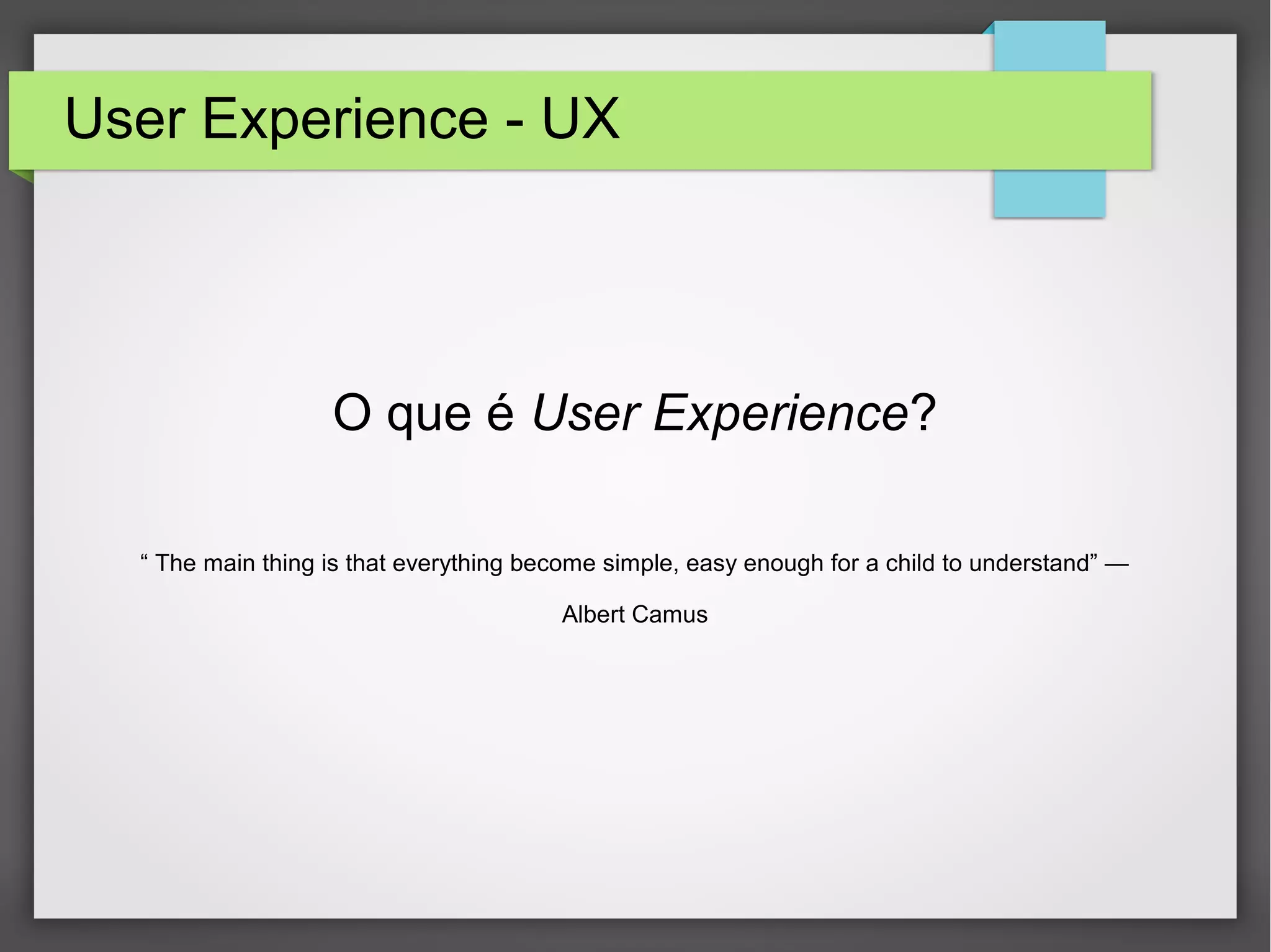User Experience (UX) refere-se à faculdade perceptiva e respostas de um indivíduo ao utilizar ou antecipar a utilização de um produto, sistema ou serviço. Embora relacionada, UX é diferente de usabilidade, que se refere à medida em que um sistema pode ser utilizado para atingir objetivos de forma eficaz e satisfatória. UX envolve fatores como utilidade, usabilidade e desejabilidade de um sistema para o usuário.