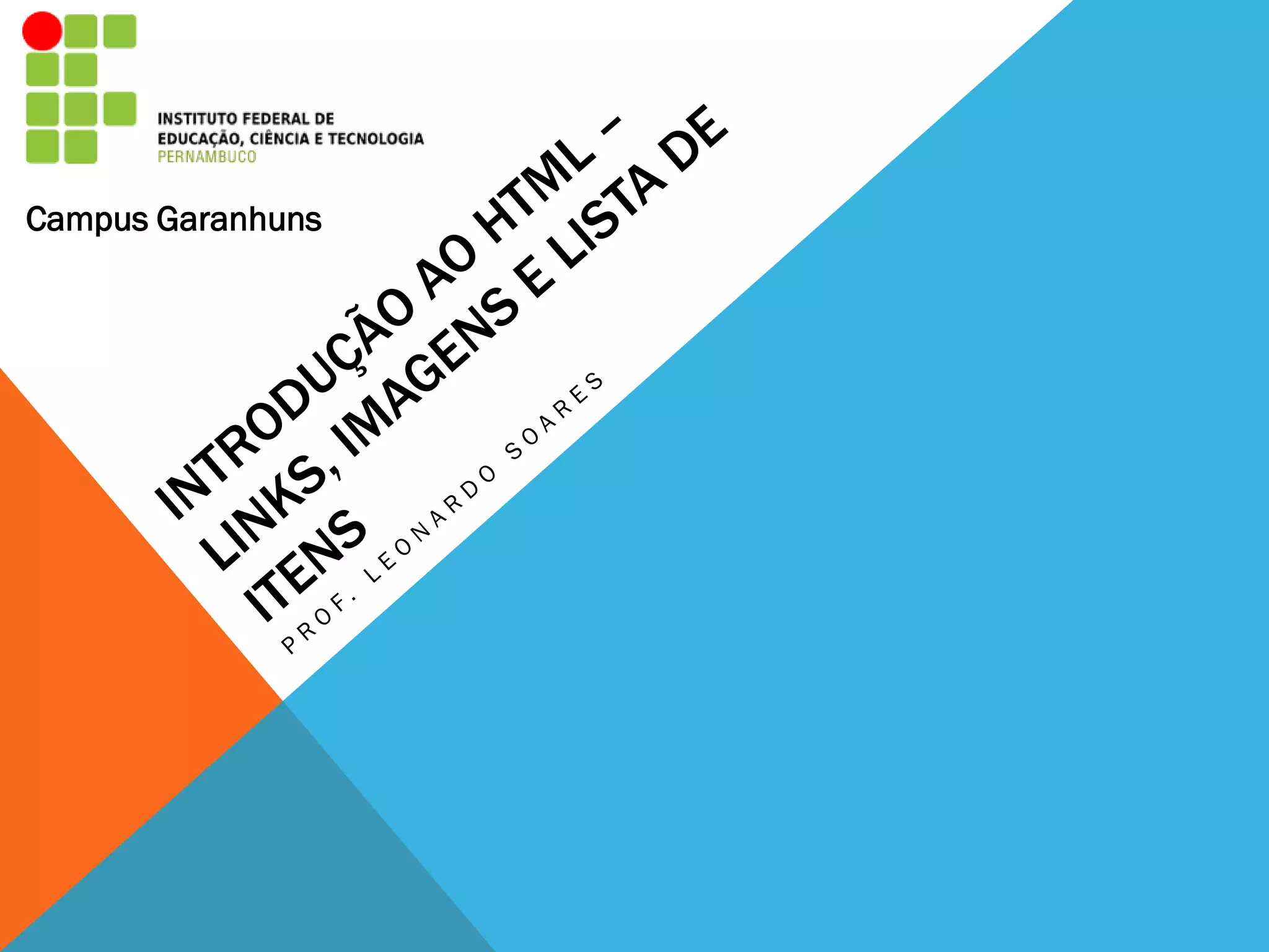 O documento fornece instruções sobre tags HTML importantes como <a> para links, <img> para imagens, e <ul> e <ol> para listas. Ele explica os atributos dessas tags e fornece exemplos de como usá-las corretamente.