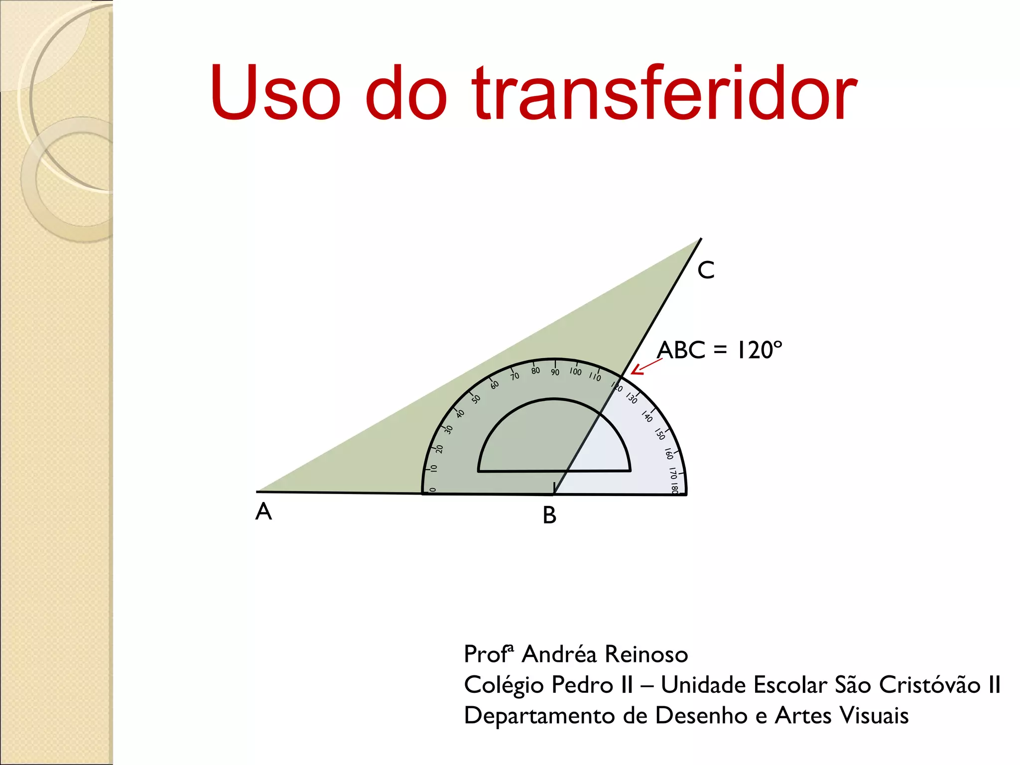 O transferidor é um instrumento utilizado para medir ângulos. Tem dois elementos importantes: a linha de fé e o centro. Para medir um ângulo, coloque o transferidor sobre ele com o centro no vértice e a linha de fé coincidindo com um lado do ângulo, e então contar a medida a partir de zero.