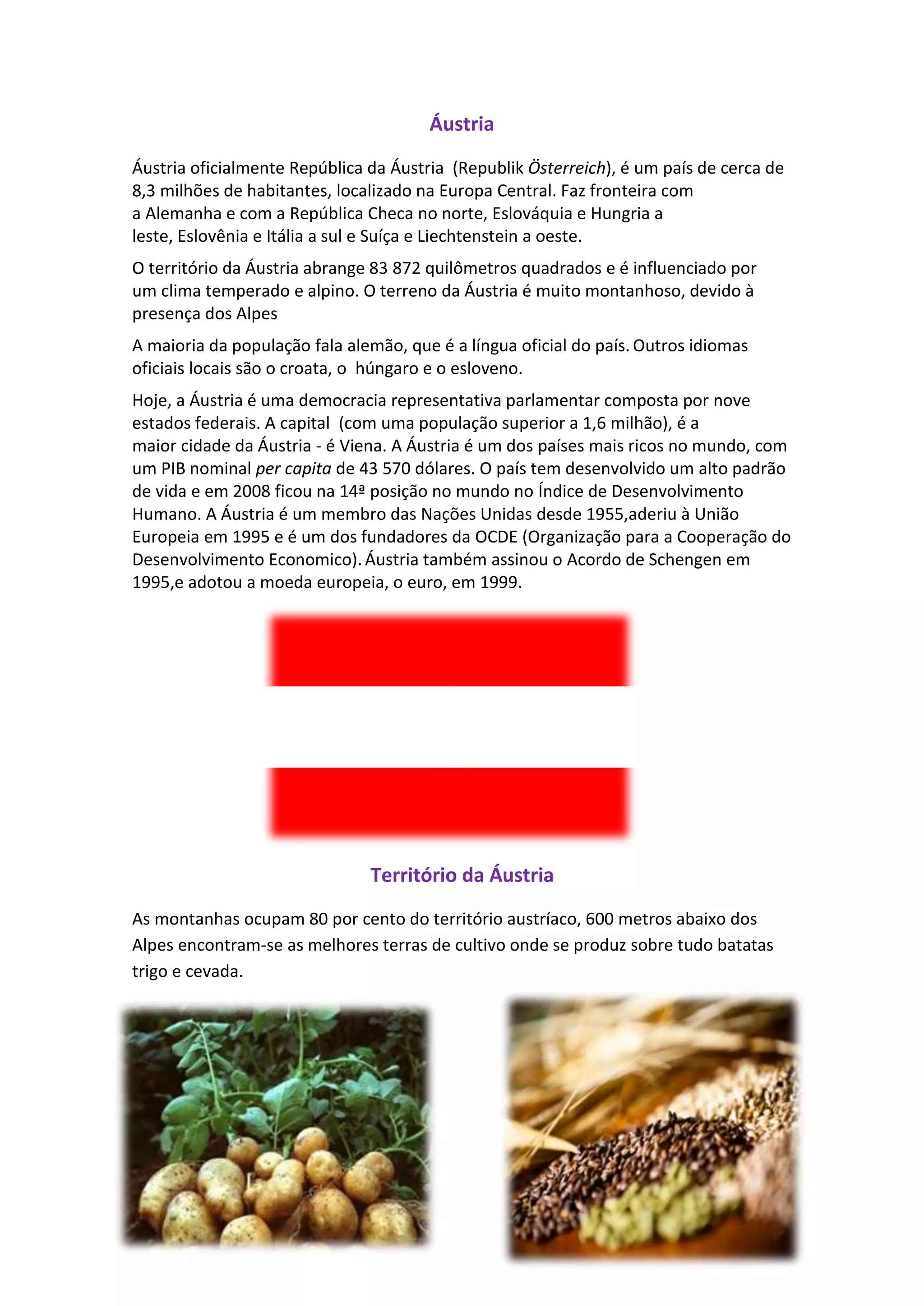 A Áustria é um país de 8,3 milhões de habitantes localizado na Europa Central, cercado por Alemanha, República Checa, Eslováquia, Hungria, Eslovênia e Itália. O território é muito montanhoso devido aos Alpes e o clima é temperado. A maioria da população fala alemão e a capital é Viena.