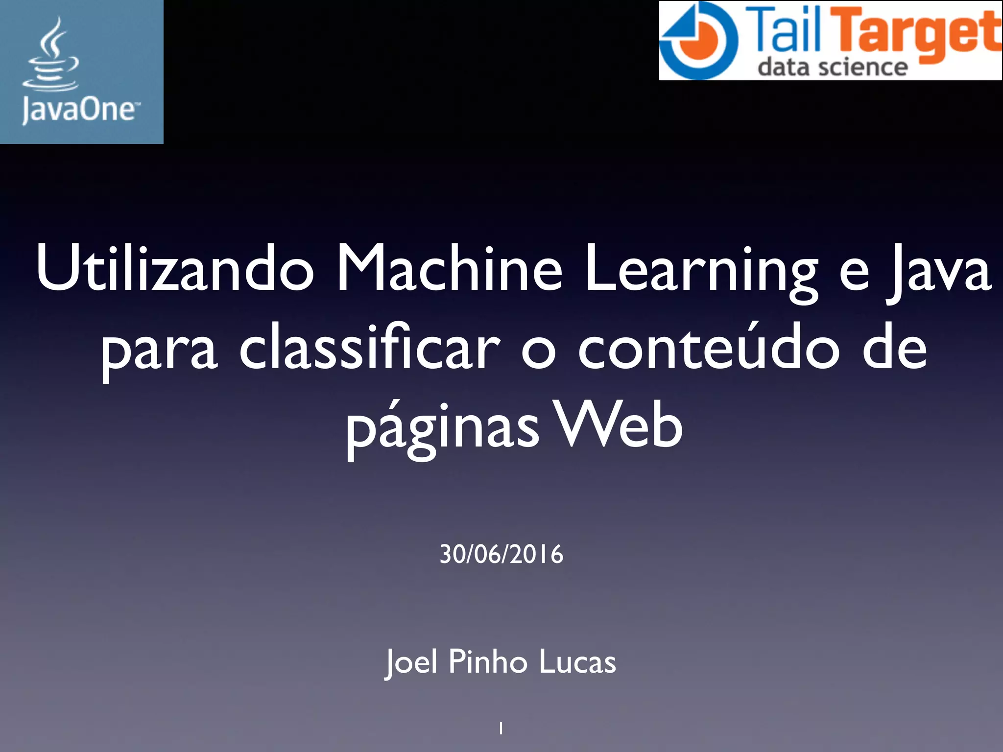 1) O documento discute a classificação de conteúdo de páginas web usando machine learning e Java. 2) Inclui detalhes sobre como preparar os dados, treinar modelos de classificação e avaliar os resultados. 3) Também aborda implementações práticas usando a biblioteca Apache Mahout e casos reais de classificação de conteúdo web.