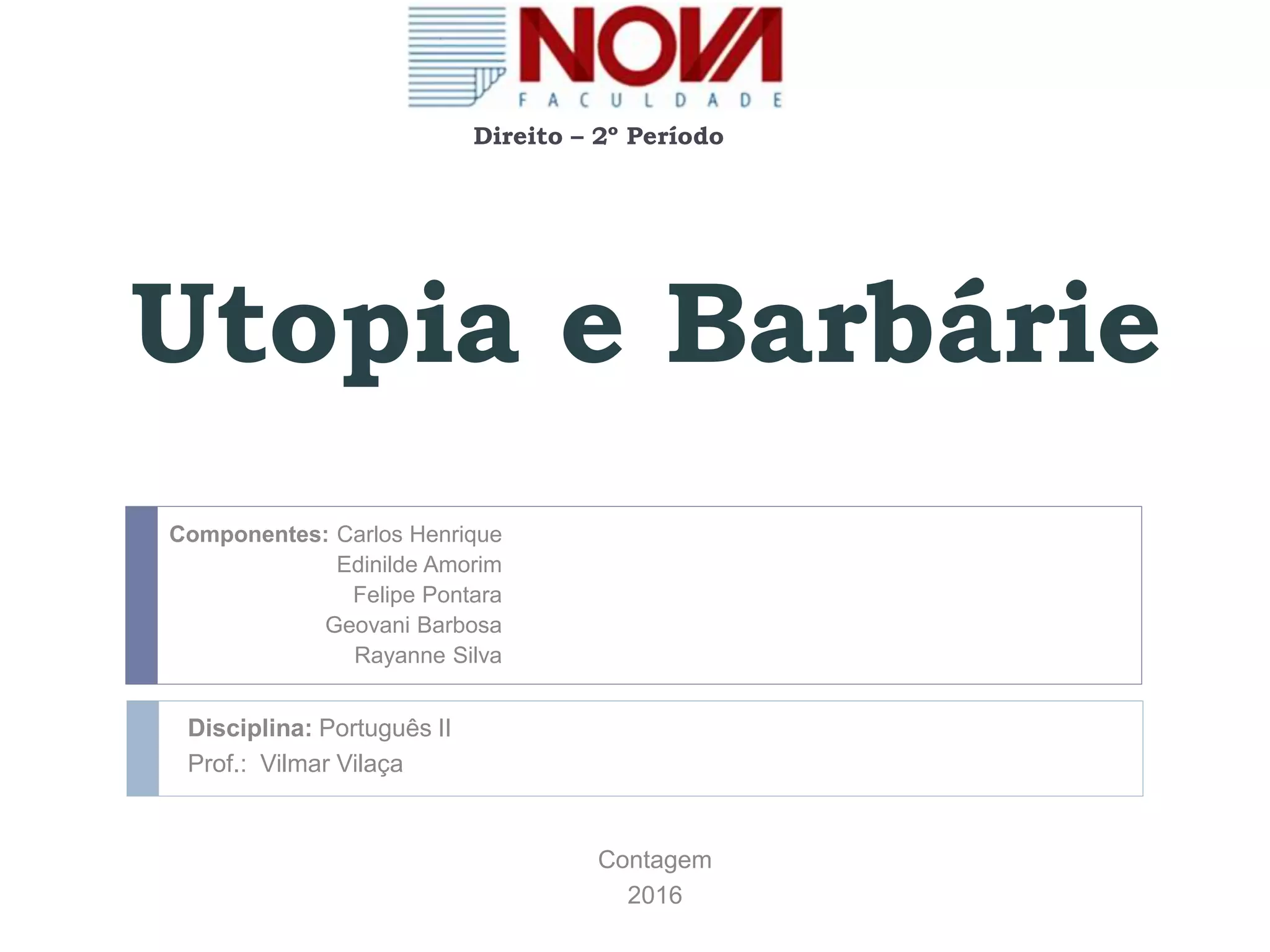 O documento discute a relação entre utopia e barbárie, abordando a transição de sonhos sociais em realidades opressivas, como exemplificado por eventos históricos como o bombardeio de Hiroshima e Nagasaki, o surgimento do nazismo e a Guerra do Vietnã. A análise também inclui o golpe militar no Brasil em 1964 e a ditadura no Chile, enfatizando a violência e a repressão associadas a esses períodos. A narrativa destaca como ideais utópicos muitas vezes resultam em tragédias humanitárias e violações de direitos.