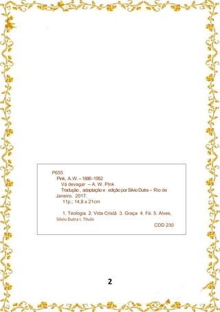 1) O documento discute os perigos da pressa e da falta de reflexão em diversas áreas da vida cristã, como na oração, na pregação, ao receber repreensões e ao julgar os outros.