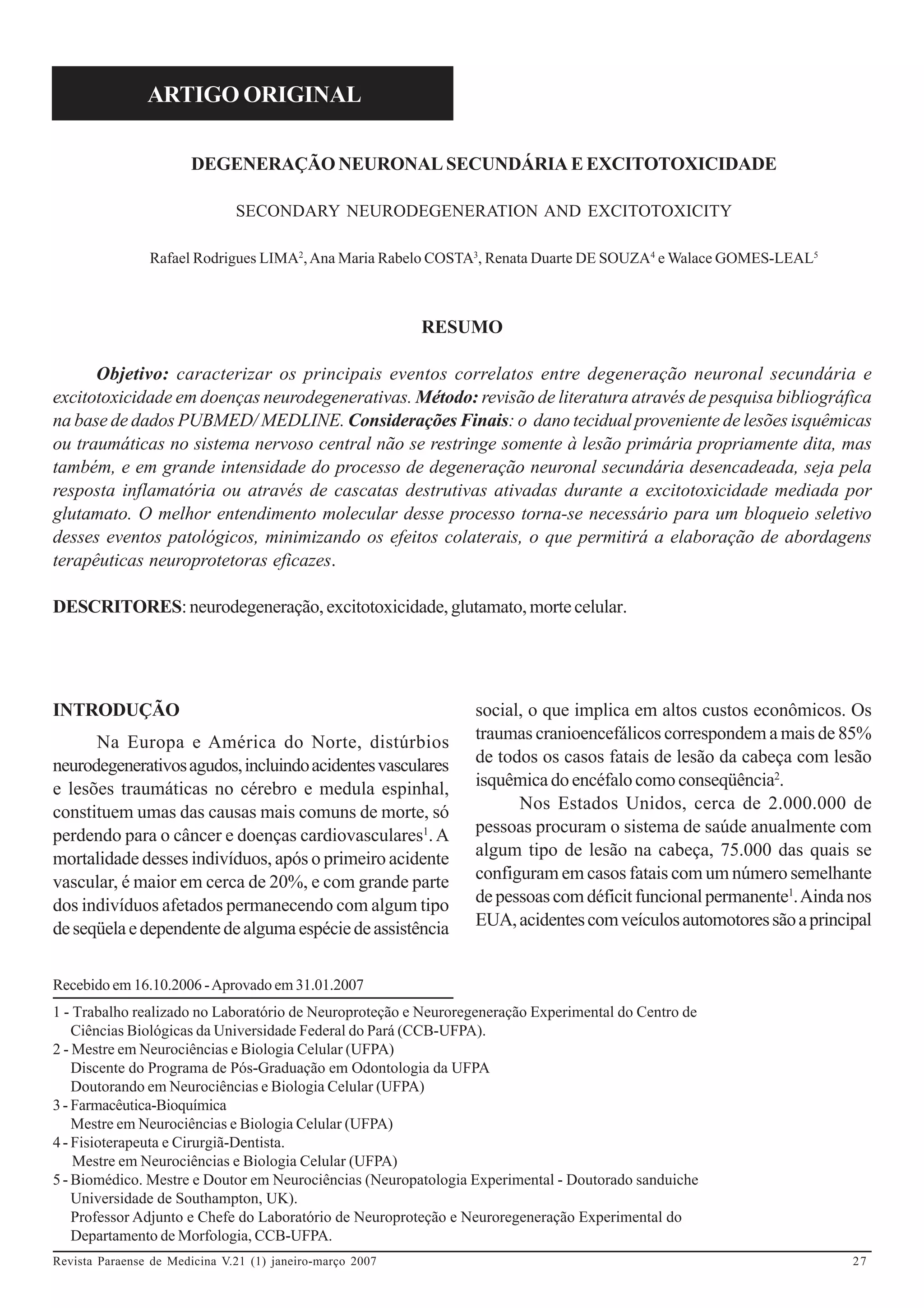 1) A degeneração neuronal secundária é desencadeada por lesões no cérebro e medula espinhal e causa mais danos do que a lesão primária. 2) A excitotoxicidade mediada por glutamato é um importante mecanismo da degeneração neuronal secundária, levando à morte de neurônios por influxo excessivo de cálcio. 3) Um melhor entendimento desses processos é necessário para o desenvolvimento de terapias neuroprotetoras eficazes.