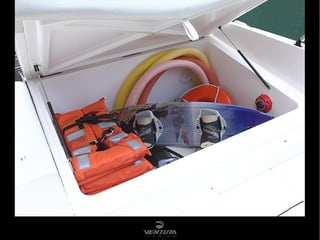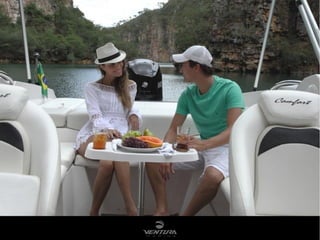 Este barco tem 7,36 metros de comprimento total, pode transportar até 10 passageiros, e tem como principais características seu tamanho maior do que a média da categoria, melhor navegabilidade e maior solarium de popa.