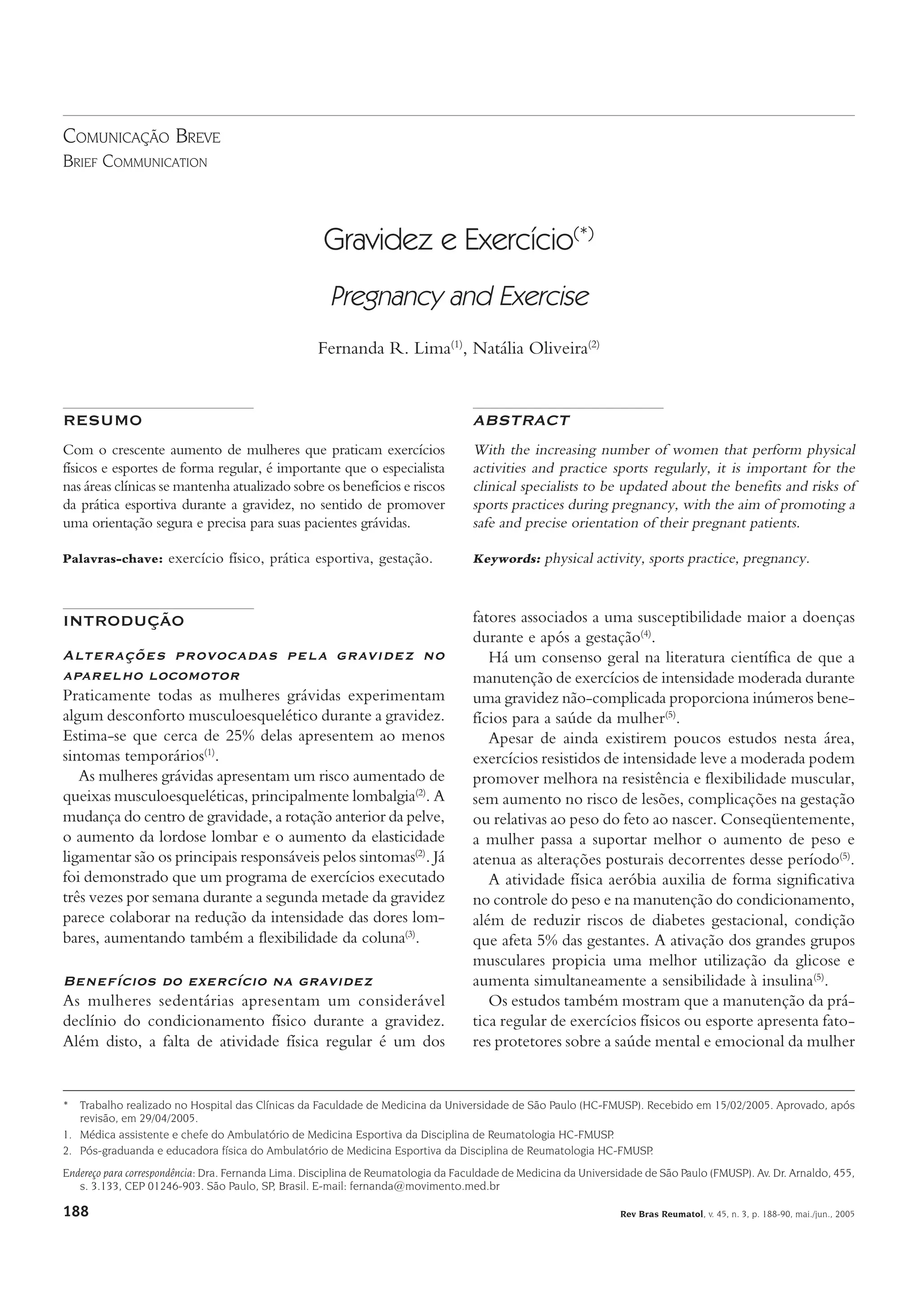 Este documento discute os benefícios e riscos da prática de exercícios físicos durante a gravidez. A prática moderada de exercícios traz benefícios como melhor condicionamento físico, controle de peso e redução de riscos de diabetes gestacional. Contudo, exercícios muito intensos ou em altas temperaturas podem causar estresse fetal. O documento fornece diretrizes para a prescrição segura de exercícios para gestantes.
