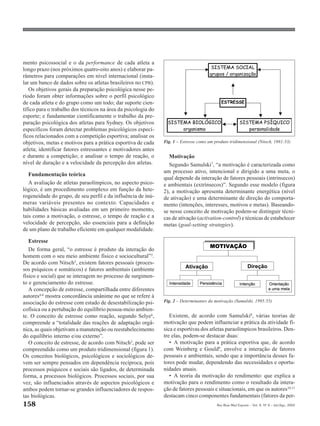 Este artigo apresenta os resultados da avaliação psicológica de 64 atletas paraolímpicos brasileiros de oito modalidades. Os testes aplicados detectaram diferenças significativas em parâmetros psicológicos entre atletas do sexo masculino e feminino, e entre atletas com deficiências físicas, visuais ou mentais. Em geral, o principal motivo para iniciar a prática esportiva foi o prazer, enquanto a competição foi o principal motivo atual. Fatores de estresse comuns relatados foram problemas de sono, press