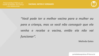 O documento discute mitos e verdades sobre vacinas, abordando tópicos como epidemiologia vacinal, queda na cobertura, desinformação, segurança de ingredientes e eventos adversos. Defende a importância das vacinas para a saúde coletiva e a responsabilidade compartilhada em garantir altas taxas de imunização.