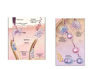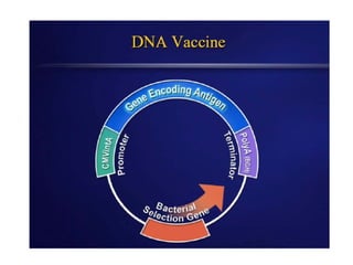 O documento discute os diferentes tipos de imunização, incluindo imunização passiva e ativa, e os tipos de vacinas, como de organismos vivos atenuados, organismos mortos, subunidades, DNA e vetores recombinantes. Também aborda o mecanismo e histórico de vacinas específicas como a da varíola e hepatite B, além de perspectivas futuras em adjuvantes e novas vacinas para doenças ainda sem proteção efetiva.