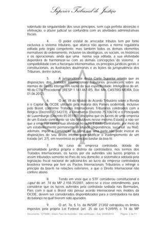 O Superior Tribunal de Justiça julgou um recurso especial interposto pela Companhia Vale do Rio Doce contra decisão do Tribunal Regional Federal da 2a Região que manteve a incidência de IRPJ e CSLL sobre resultados positivos de equivalência patrimonial de suas controladas no exterior. O STJ analisou questões tributárias envolvendo a aplicação do artigo 74 da MP 2158-35/2001 e da IN 213/2002, bem como a compatibilidade dessas normas com tratados internacionais celebrados pelo Brasil.