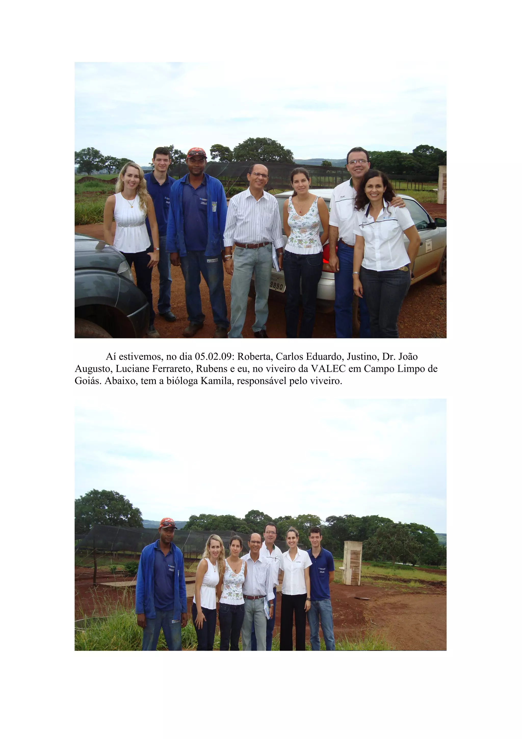 O documento descreve uma reunião de trabalho realizada em 05 de fevereiro de 2009 na VALEC em Campo Limpo de Goiás com várias autoridades municipais e representantes de organizações para discutir projetos de agricultura urbana e problemas sociais comuns. A reunião contou com a presença do Secretário de Desenvolvimento Econômico de Anápolis e do Diretor de Agricultura, entre outros.