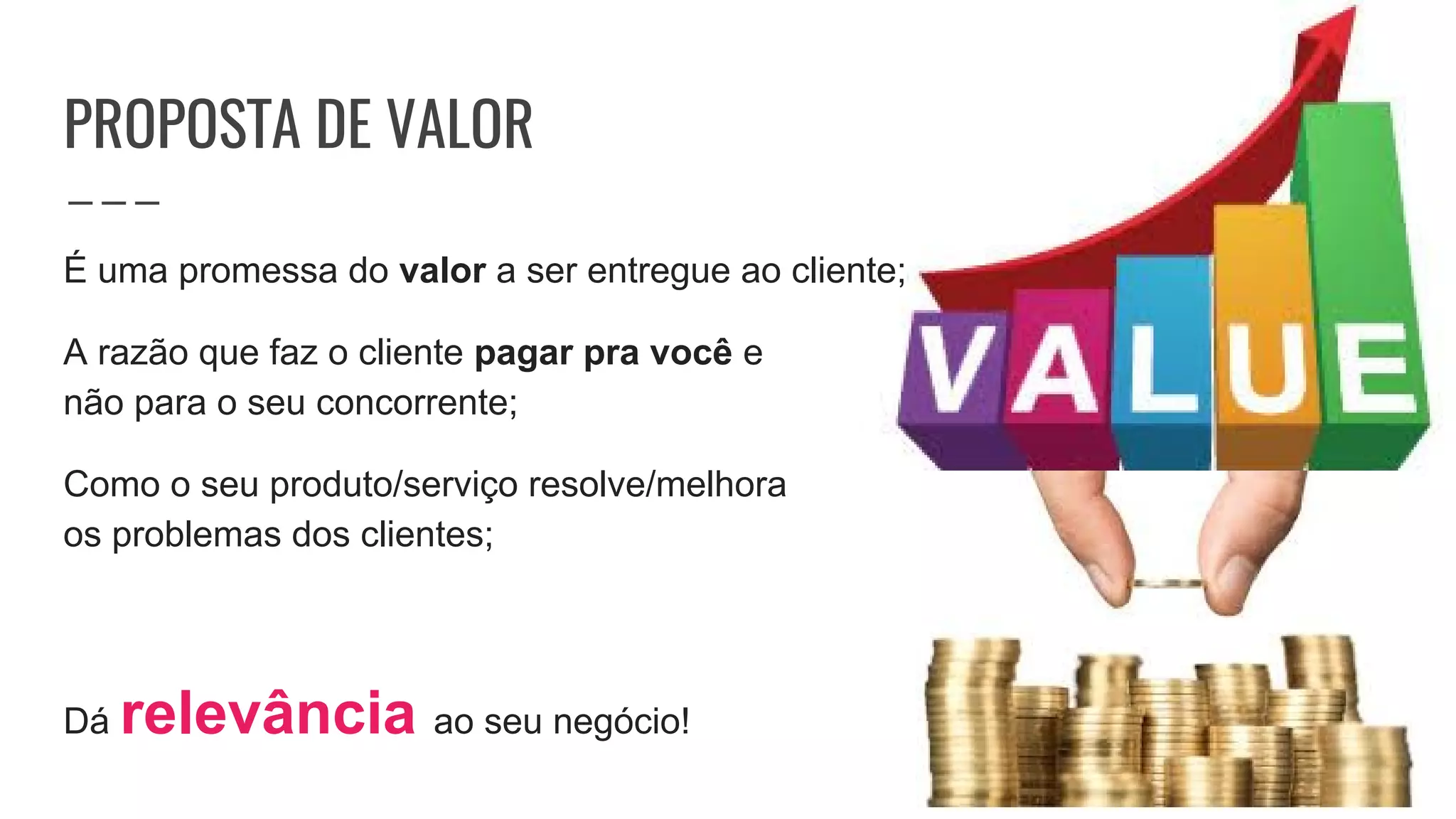 O documento discute a importância de validar a proposta de valor de um negócio por meio de MVPs (Produtos Mínimos Viáveis), que permitem testar hipóteses com clientes de forma rápida e barata antes de lançar produtos completos. É explicado que um MVP deve entregar valor ao cliente com funcionalidades básicas e coletar feedback para aprimorar continuamente a solução. Diferentes tipos de MVPs são apresentados, como landing pages e mágicos de Oz.