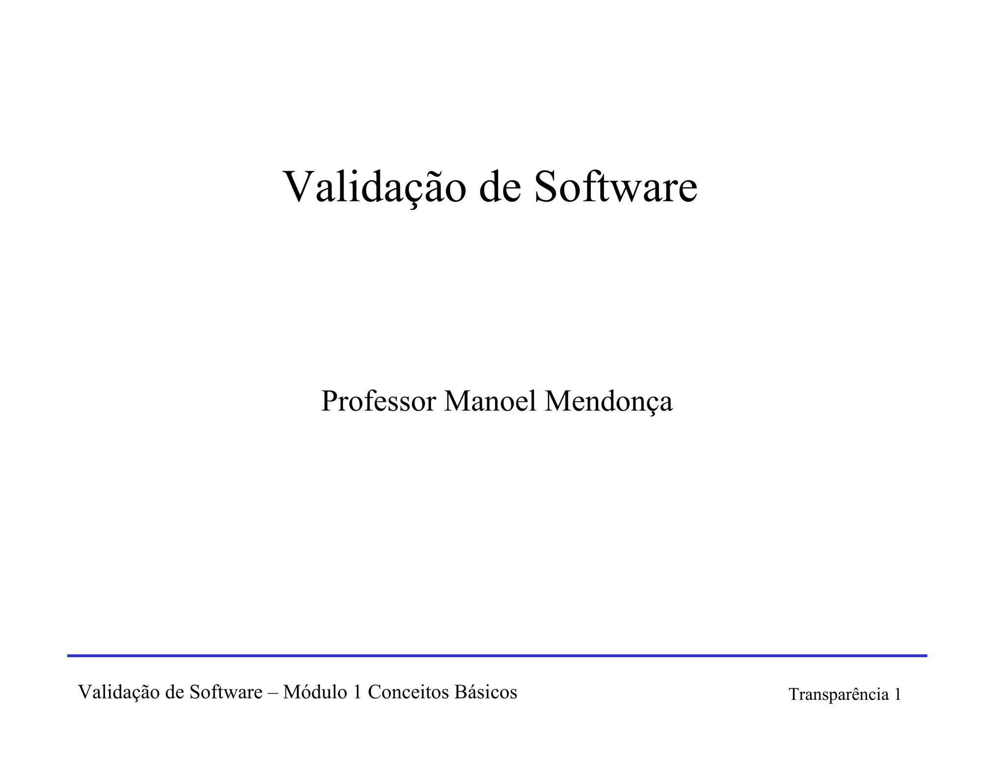 Este documento apresenta conceitos básicos sobre validação de software. Ele discute tópicos como defeitos e falhas, verificação versus validação, garantia da qualidade de software e testes de software. O documento também fornece detalhes sobre organização para realização de testes, técnicas de teste e processos de teste.
