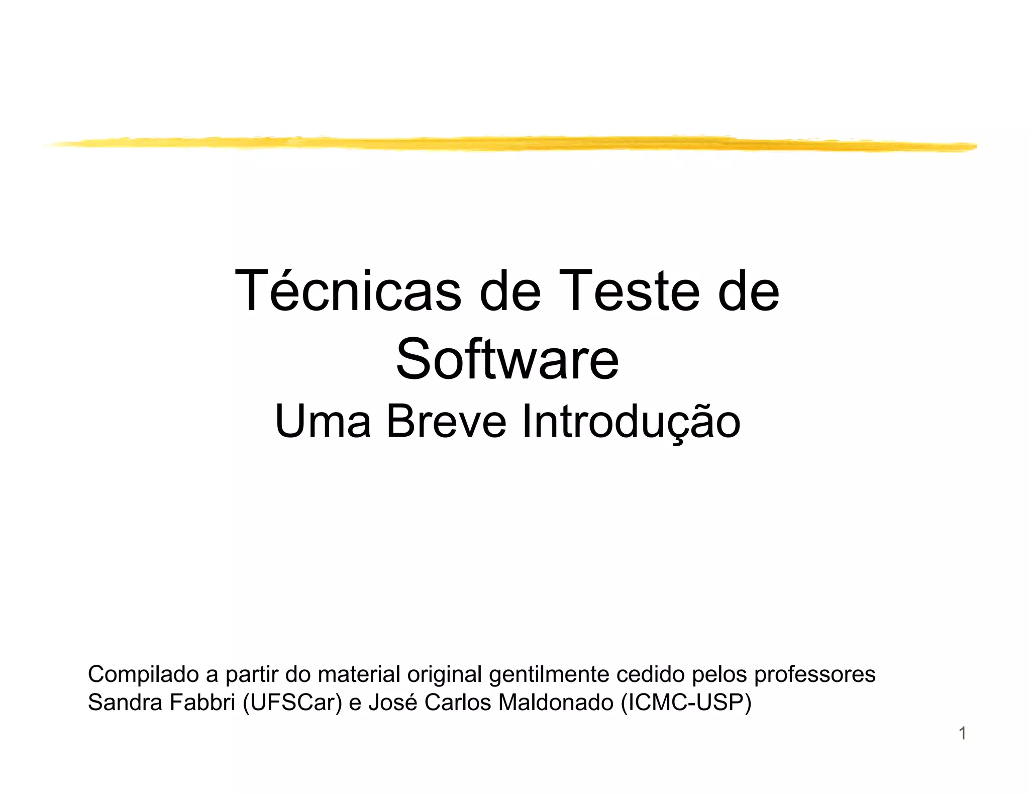 Este documento fornece uma breve introdução às técnicas de teste de software, descrevendo conceitos como: