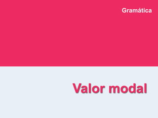 O documento discute a categoria gramatical da modalidade, que expressa a atitude do locutor em relação a um enunciado ou participantes do discurso. A modalidade pode ser manifestada através da entoação, modo verbal, advérbios, verbos e construções modais. Ela divide-se em modalidade epistêmica, deôntica e apreciativa, representando valores de probabilidade, certeza, permissão, obrigação e juízos apreciativos.