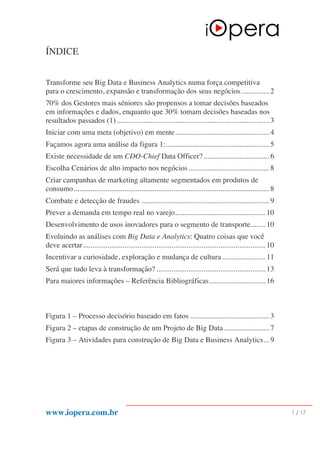 O documento discute como o uso estratégico de big data e business analytics pode transformar negócios, enfatizando a importância de decisões baseadas em dados em vez de resultados passados. É destacado que a infraestrutura adequada e o entendimento das informações são cruciais para capturar e analisar dados, melhorando a tomada de decisões e impulsionando a competitividade. O artigo sugere que, independentemente da presença de um Chief Data Officer, a responsabilidade pela implementação e direcionamento de estratégias orientadas a dados deve ser centralizada em um profissional capacitado na organização.
