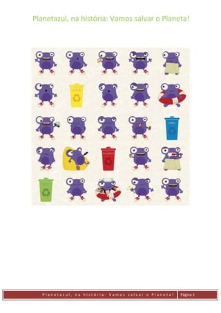 O Planetazul era desorganizado e desperdiçava água, energia elétrica e recursos. Após enfrentar problemas como falta de água e apagões, ele percebeu que precisava mudar seus hábitos para proteger o planeta. O Planetazul passou a adotar medidas sustentáveis como economizar energia, reduzir consumo, reciclar lixo e incentivar outros a também cuidarem do meio ambiente.