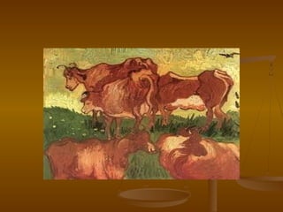 O documento pede para relacionar quadros do pintor Vincent Van Gogh com momentos da novela "O pintor do sombreiro de malvas" de Marcos Calveiro. O objetivo é associar cada quadro de Van Gogh com um momento específico da história apresentada no livro.