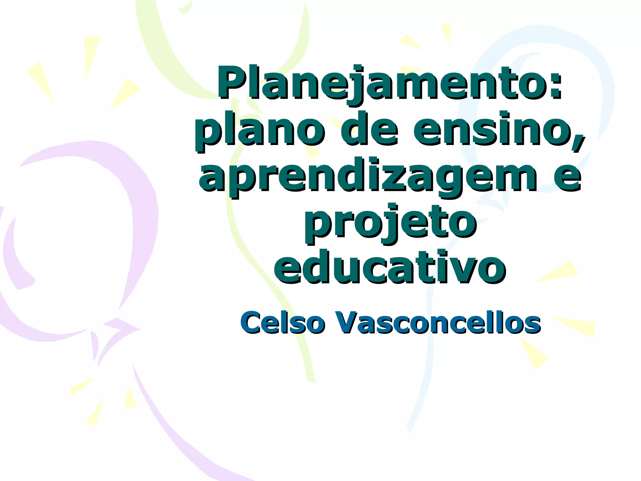 O documento discute os conceitos de planejamento, projeto e participação no contexto educacional. Apresenta definições de termos como planejamento educacional, curricular, de ensino e escolar. Discorre também sobre a importância da participação democrática e sensibilização para a melhoria da qualidade da educação.