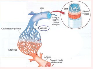 O sistema cardíaco é constituído por sangue, vasos sanguíneos e coração. Os vasos sanguíneos incluem artérias, que transportam sangue do coração para o corpo, capilares, os menores vasos onde ocorre a troca de gases, e veias, que transportam sangue de volta ao coração.