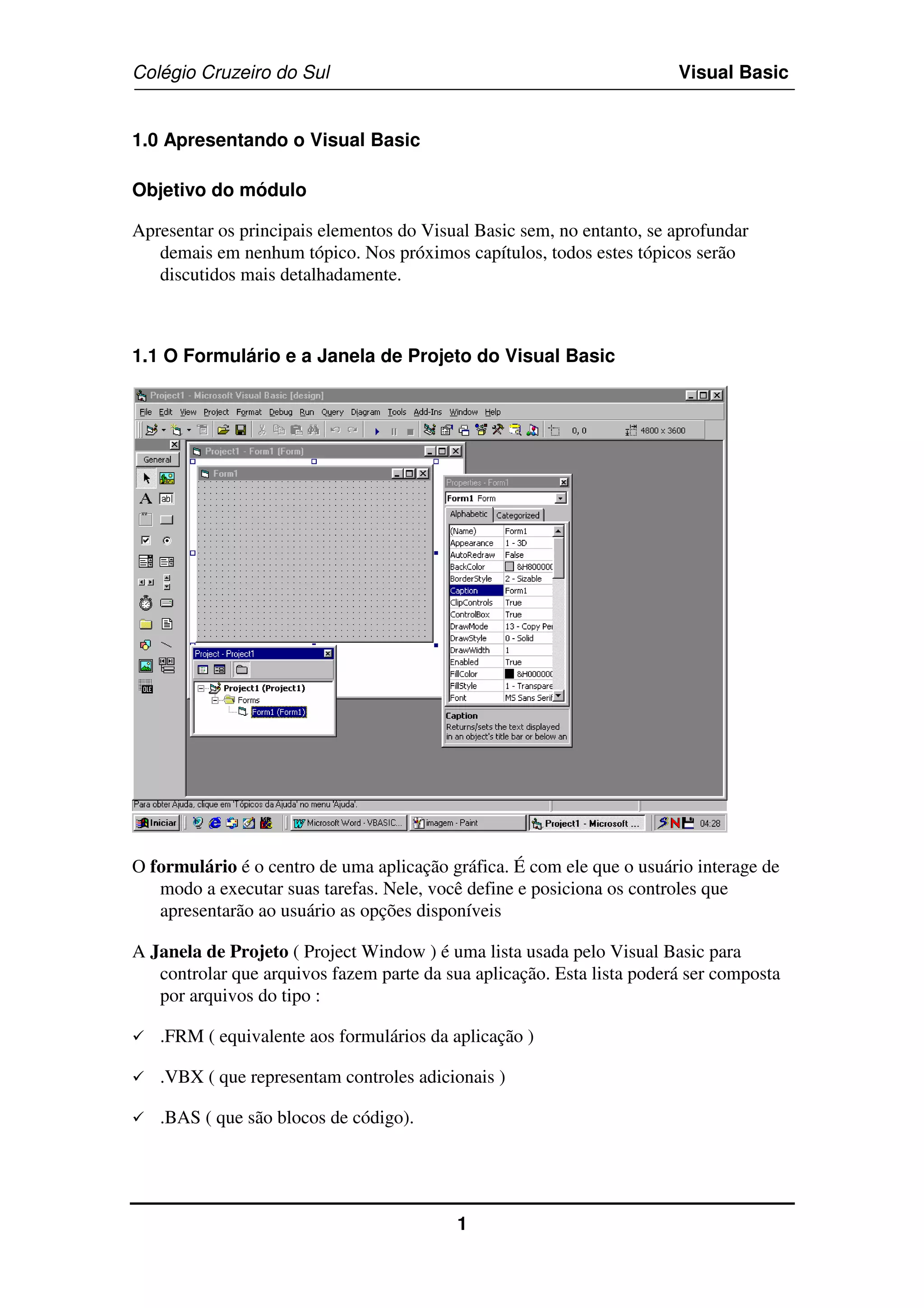 O documento apresenta os principais elementos do Visual Basic, incluindo: