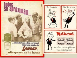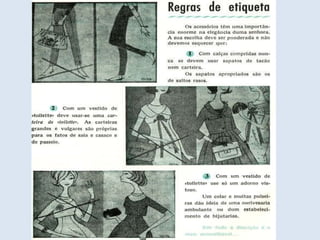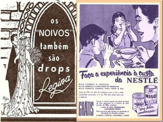 O documento descreve vários itens e aspectos da cultura portuguesa de diferentes décadas do século XX, incluindo marcas e produtos comerciais dos anos 1950 e 1960, como isqueiros da marca Viarco e conservas, assim como brinquedos, rádios e outros objetos populares nas décadas de 1950 e 1960.