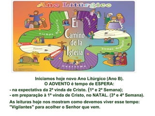 O documento trata do início do novo ano litúrgico, marcando o Advento como um tempo de espera e vigilância para a vinda de Cristo. As leituras enfatizam a necessidade de esperança, vigilância e a preparação espiritual da comunidade, destacando a importância de viver com caráter vigilante e comprometido com a missão cristã. Além disso, reflete sobre a importância da novena do Natal como meio de concretizar a esperança e a união da fé familiar.